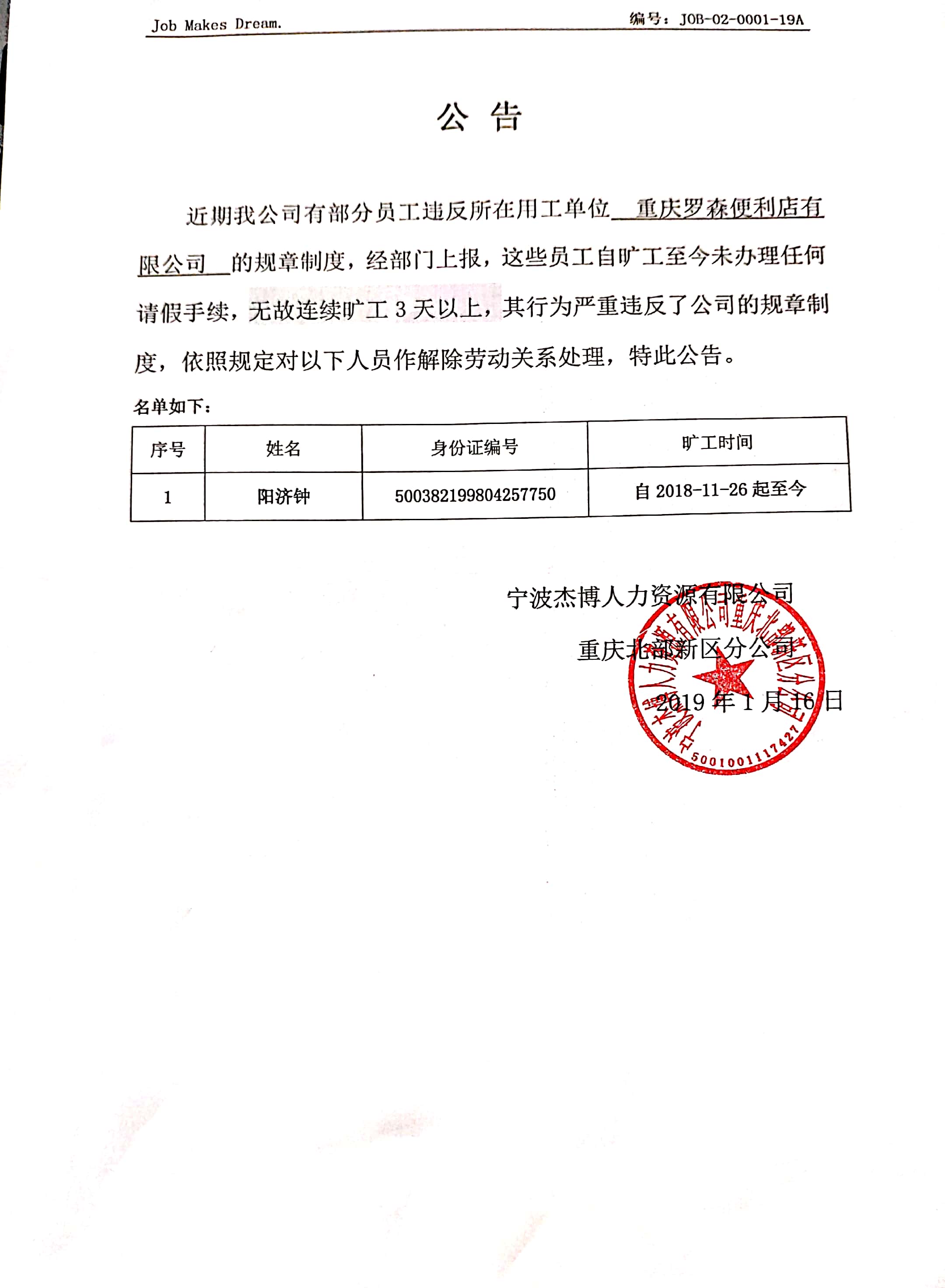 离职公告20190117