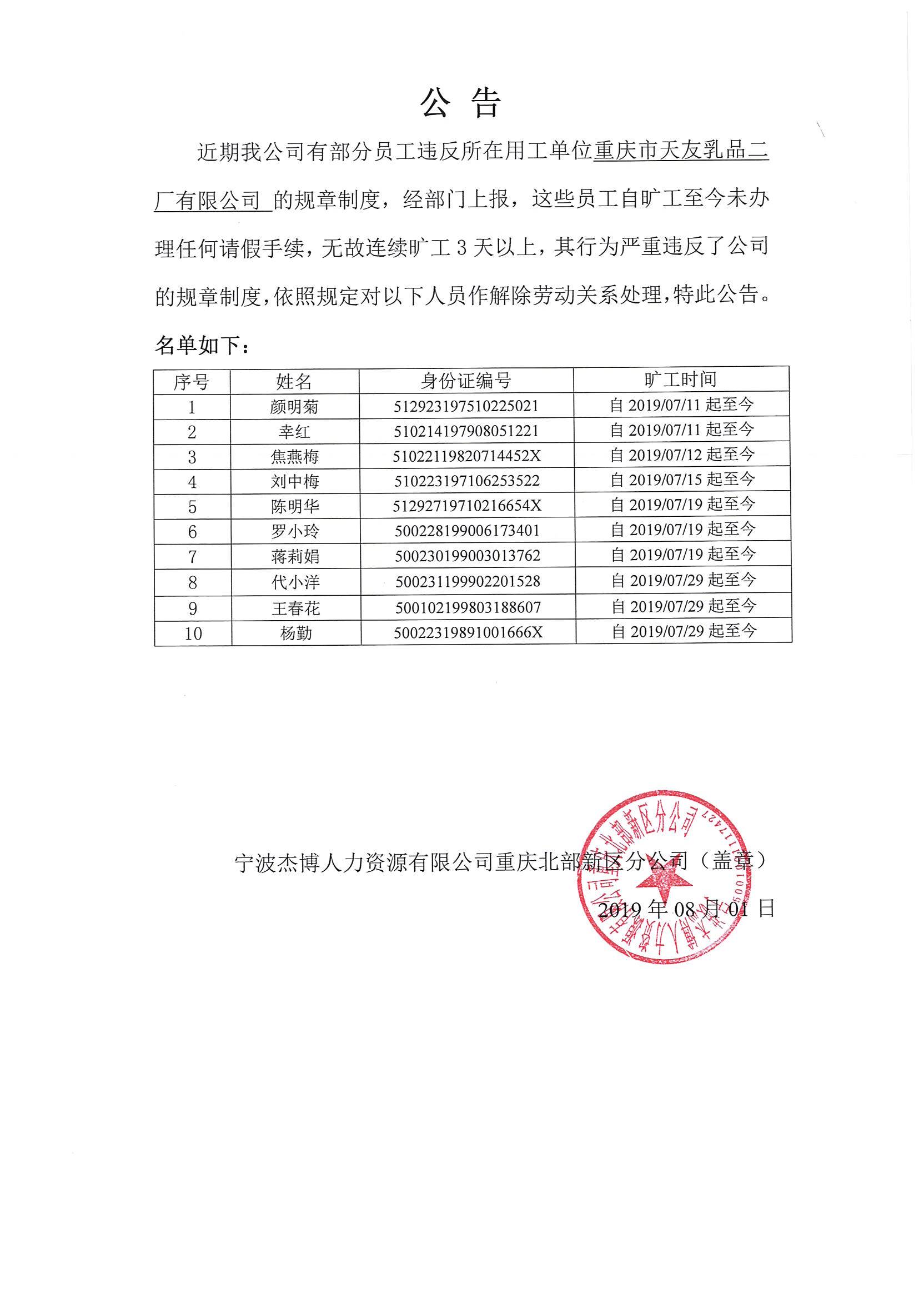 离职公告20190801