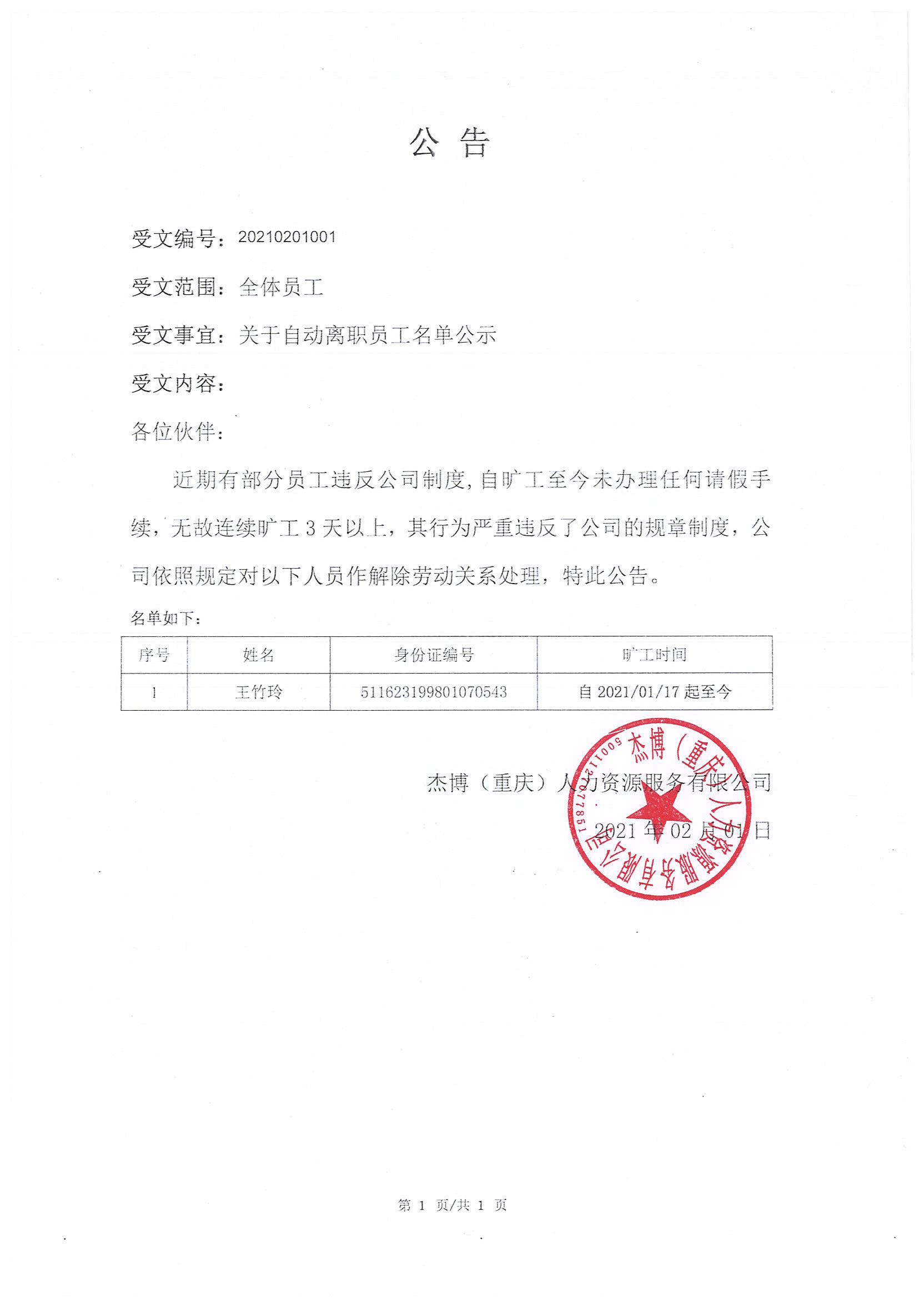 离职公告20210201